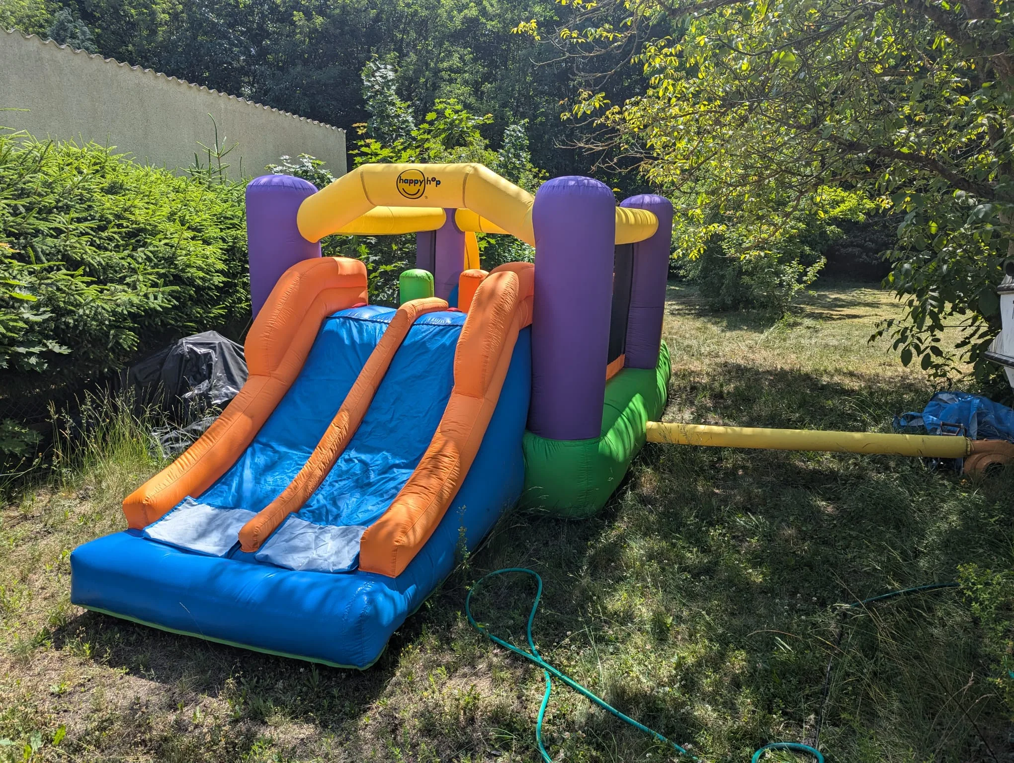 Diese farbenfrohe Hüpfburg ist ein echtes Highlight für Kindergeburtstage, Gartenpartys oder Events aller Art. Mit ihrer Kombination aus Hüpfbereich und integrierter Rutsche sorgt sie für stundenlangen Spielspaß und glückliche Kinder.
